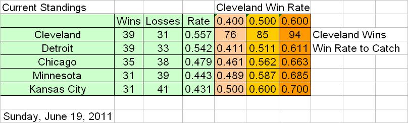 Detroit hands Cleveland their only losses this week, so Cleveland ends this week back atop the Central. Minnesota continues their surge, but would still need to play better ball than any Central team has this year for the rest of the season to hit 86 wins.
