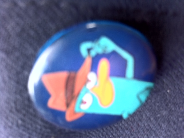 Thrilled: She loses a game and gives me the Perry pin from her set of Phineas and Ferb pins given as a consolation.