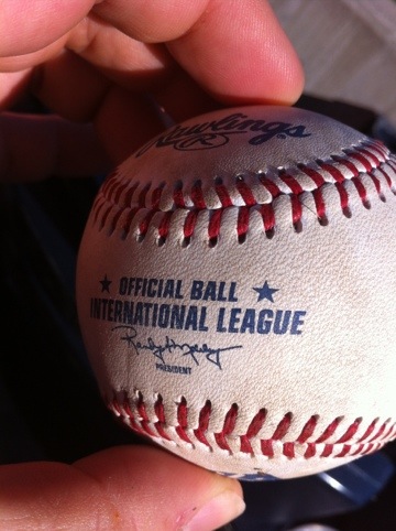 The title comes from three specific events though. I got my first real, in-play game-used foul ball. (Well my youngest daughter actually has the ball.) The ball deflected off a guy a few seats over, and landed in the seat in front of me, which had been vacated by someone with the good sense to avoid line drives. I don’t have the problem of excessive good sense in these circumstances.