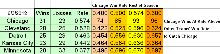 The unbelievable late May run by the White Sox has them on pace to win 85-90 games even if they play just over 0.500 baseball the rest of the year. Since many of their hitters are doing better than expected I think the White Sox can do that. Obviously Konerko can’t keep up the pace he is on, but he looks like he will have a good year if healthy. Dunn is making it impossible to make Done jokes this year. Pierczynski is hitting well. Beckham has even shown signs he has figured it out at times.
