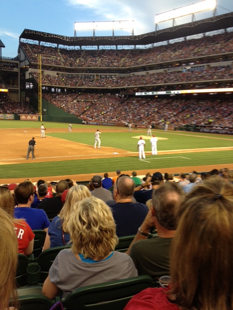 The Rangers Ballpark itself had a fair selection of food. It had barbecue brisket in many forms. After visiting Kansas City it was not too impressive though. They billed themselves as the loudest Ballpark in baseball. It appears mainly to come from the PA though and not the fans. Folks were friendly, but I had better tickets than I usually buy, so the cheap seats might be rougher. The stadium looks a little strange from the homeplate area because there are 3 different styles of architecture blended together. The suites in center would look nice on their own, but don’t really fit in. They also have something that looks like an homage to Yankee stadium in left center. There are not many bars and restaurants in easy walking distance. About 1-1.5 miles away to the west there is a street with plenty of bars and restaurants. Unfortunately when it is 80-95 that is not an easy walk. Or at least it is not a walk that would be fair to the neighboring fans later in the day.